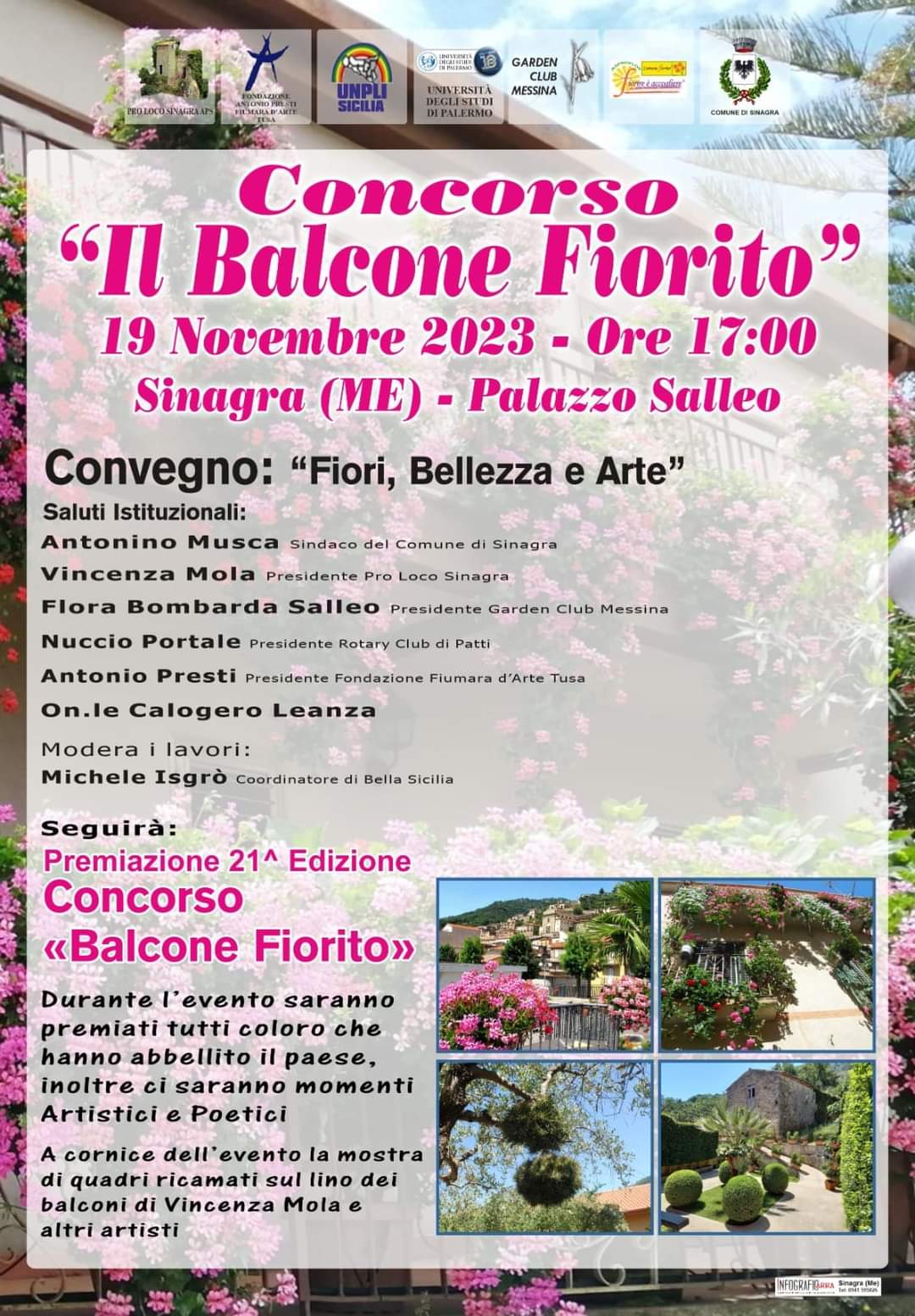 Il convegno sarà ospitato negli eleganti saloni di Palazzo Salleo domenica 19 novembre a partire dalle ore 17,00. Durante la serata saranno premiati tutti i cittadini che con dedizione e meticoloso impegno hanno abbellito il paese con fioriture contribuendo in modo significativo ad elevare la qualità della Vita e la buona immagine di Sinagra.