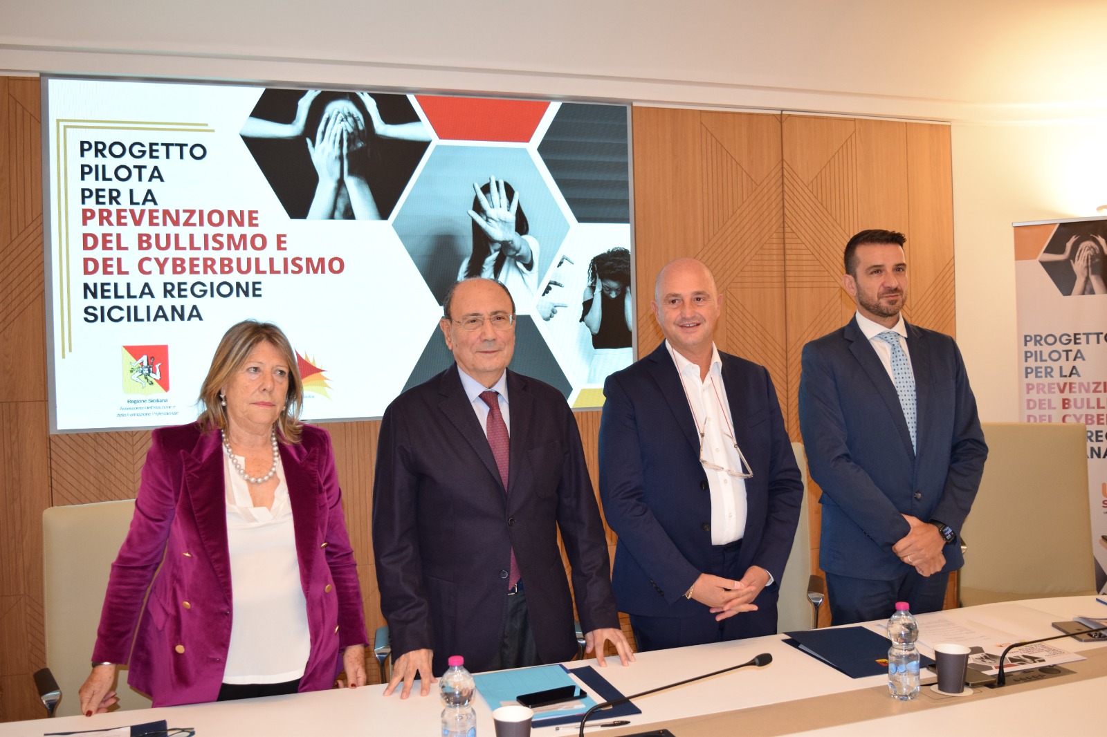 Un approccio integrato tra scuole e territorio per prevenire tempestivamente e in maniera efficace i fenomeni di bullismo e cyberbullismo. È l’obiettivo del progetto sperimentale finanziato con 1,8 milioni di euro dall’assessorato regionale dell’Istruzione e predisposto dall’Ufficio scolastico regionale per la Sicilia. L’importante intervento interistituzionale è stato presentato in conferenza stampa a Palazzo d’Orléans dal presidente della Regione Siciliana, Renato Schifani, dagli assessori all'Istruzione, Mimmo Turano, e alle Politiche sociali, Nuccia Albano, e dal direttore dell'Usr Sicilia, Giuseppe Pierro.