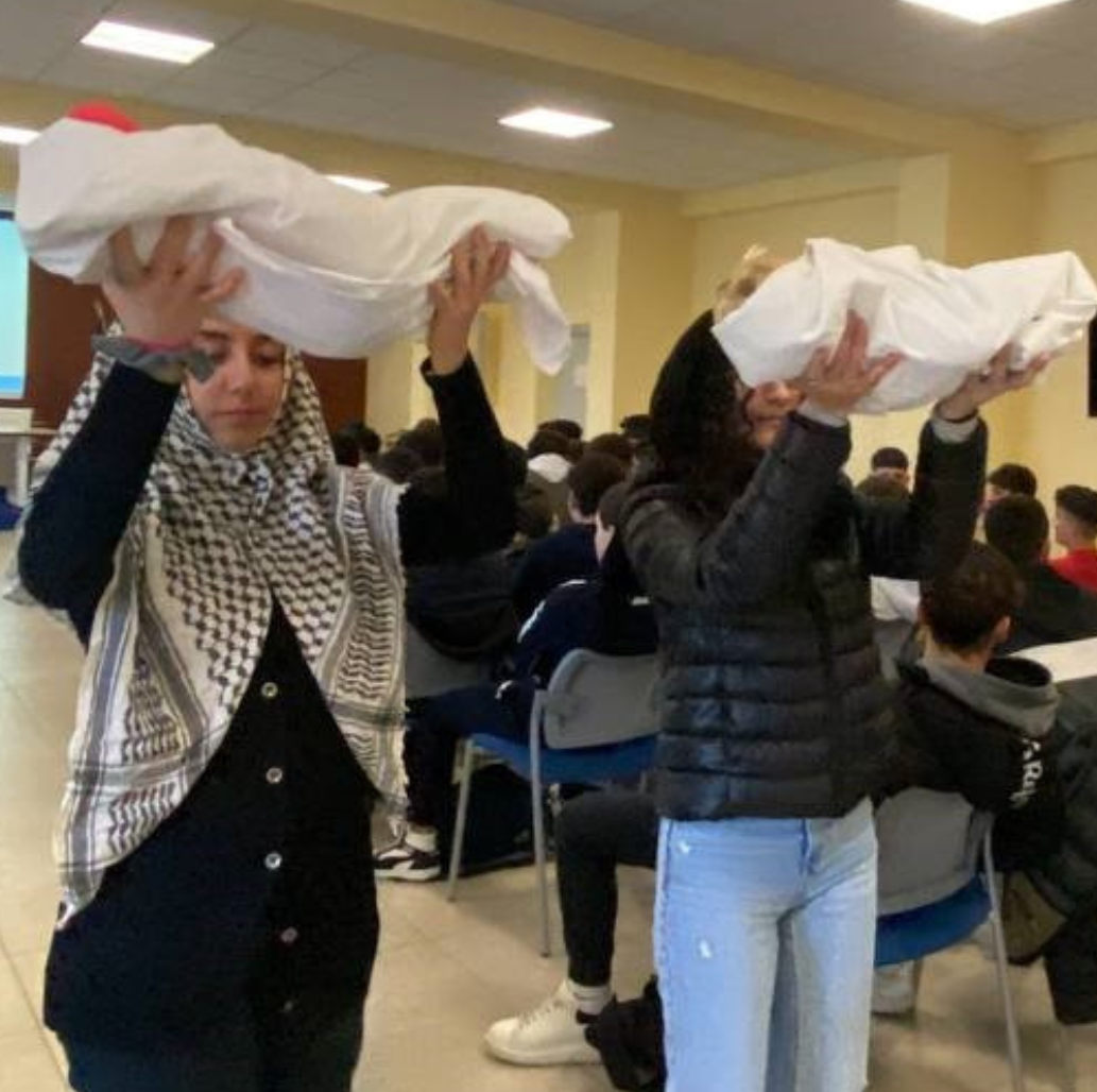 Una performance scenica silenziosa, di denuncia contro la guerra a Gaza, in Ucraina e nelle varie parti del mondo, è stata realizzata dalle studentesse e dagli studenti dell’ITIS: Flavia Aquila, Cecilia Ballì, Alessandra Costantino, Giuseppe Emanuele, Veronica Fiumara, Christian Lombardo, Francesca Lupica, Arianna Oddo, Sofia Tascone e Antonino Ventura.
