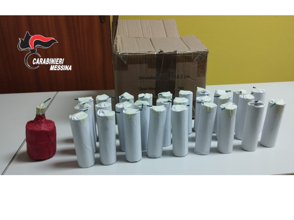 Il giorno di Capodanno, nell’ambito dei servizi di controllo del territorio e prevenzione dei reati, i militari hanno altresì denunciato, per fabbricazione abusiva ed omessa denuncia di materiale esplodente, un 38enne di Savoca, già noto alle Forze dell’Ordine, trovato in possesso, nella sua abitazione, di 29 artifizi pirotecnici illegalmente detenuti, di fabbricazione artigianale e, quindi, potenzialmente pericolosi per l’incolumità delle persone.