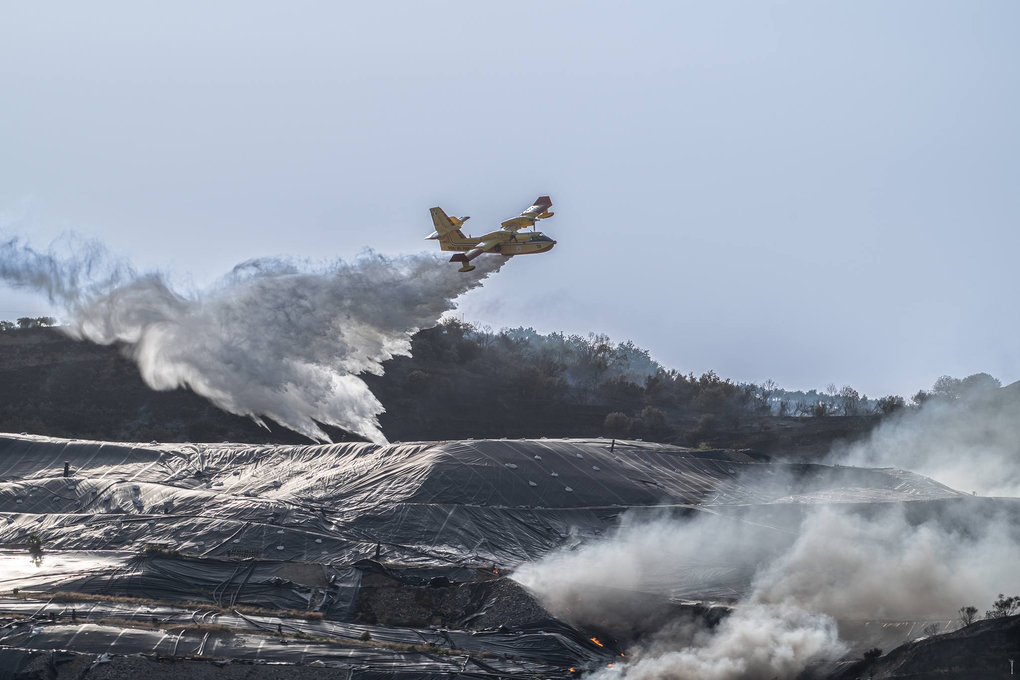 Tantissimi i lanci d'acqua effettuati dai vari mezzi aerei intervenuti per domare il rogo. In serata le operazioni di spegnimento sono proseguite senza però l’apporto dei mezzi aerei che non possono operare di notte.