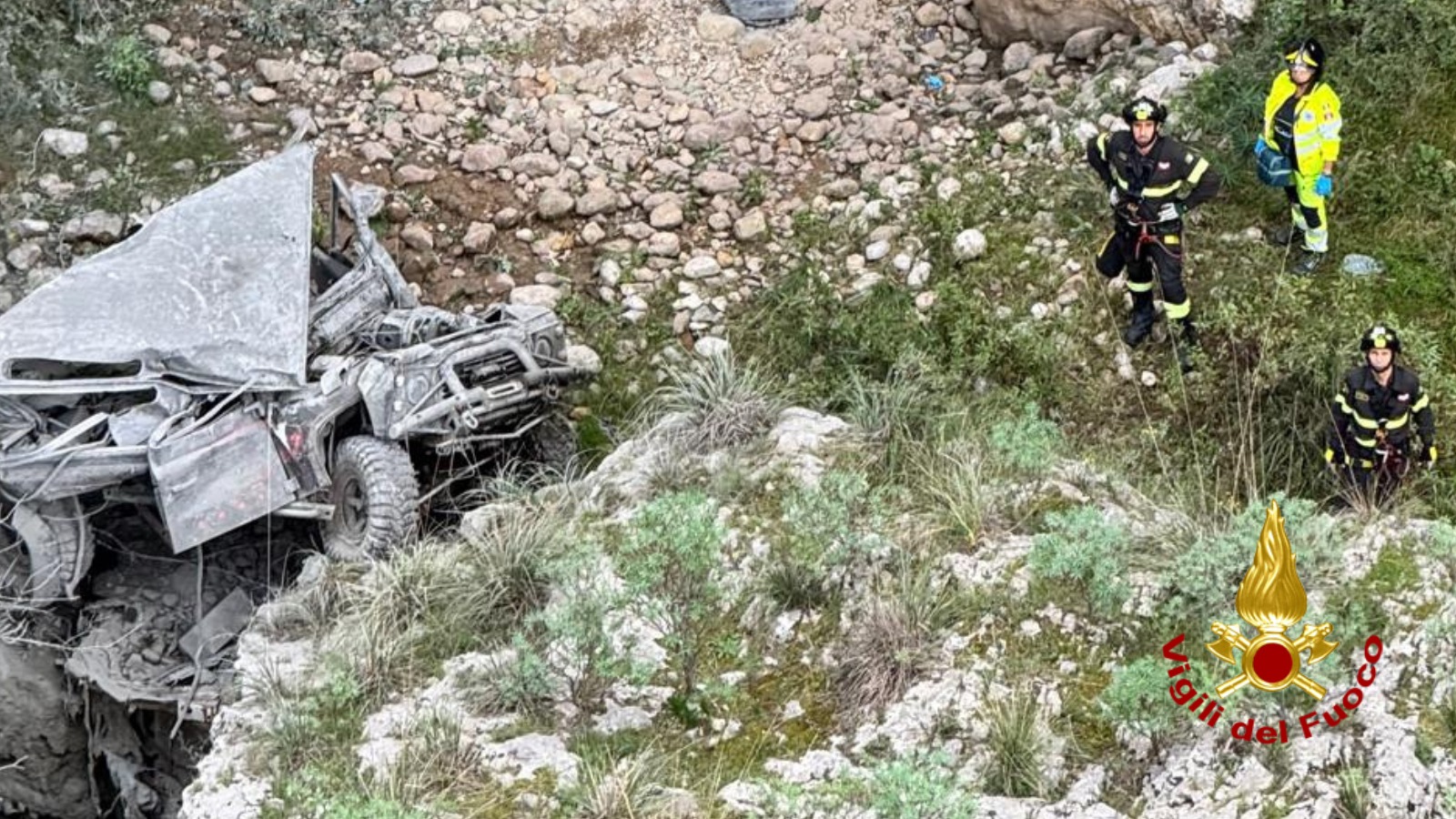 La zona impervia e di difficile accesso ha reso particolarmente complicate le operazioni di soccorso da parte dei Vigili del Fuoco. Il mezzo è finito in un dirupo e si è totalmente accartocciato. Uno dei giovani è morto subito dopo il violento impatto. Un altro ha riportato gravi ferite ed è stato recuperato e trasportato con l'elisoccorso in ospedale.