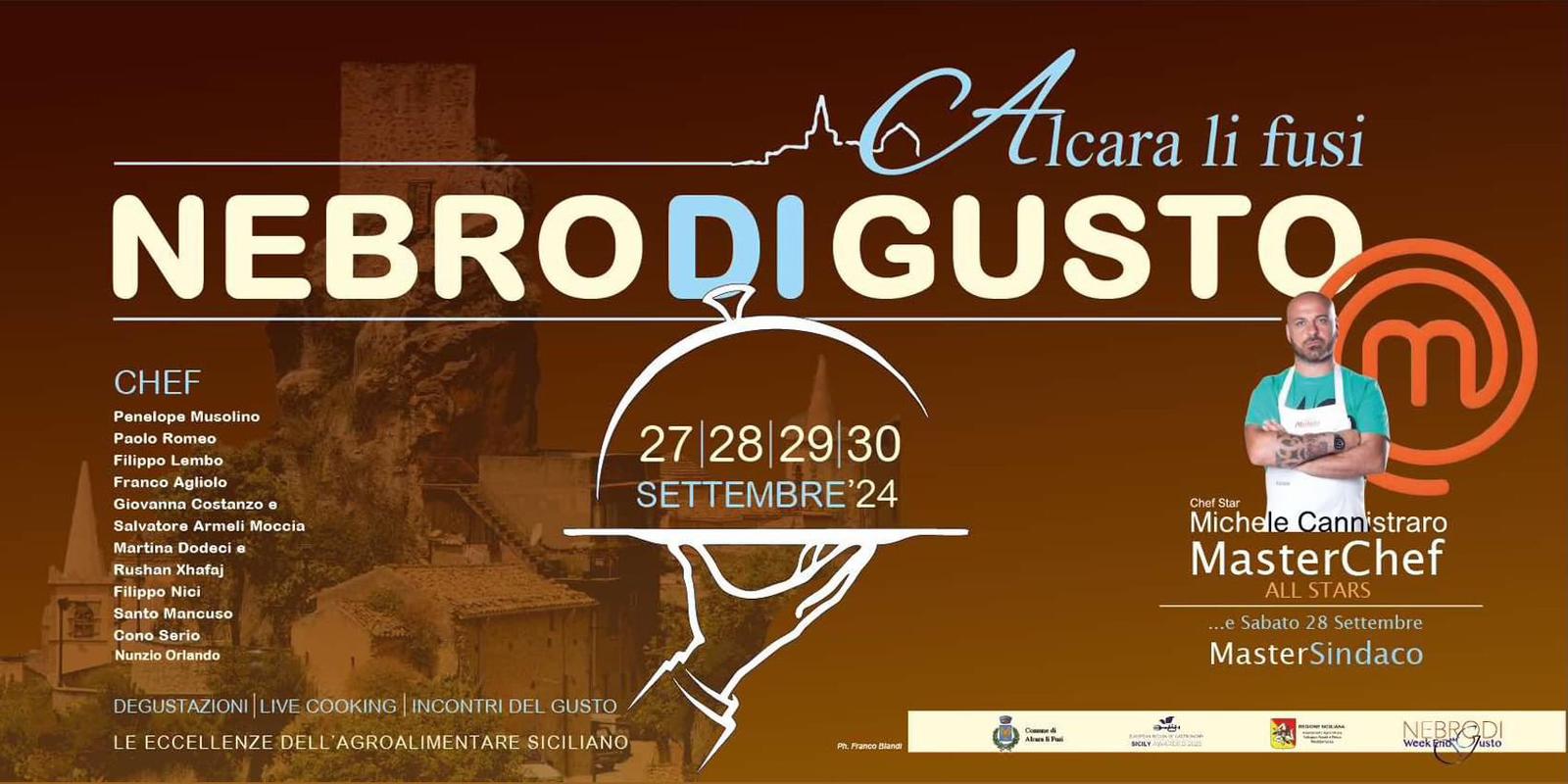 Michele CANNISTRARO – Vincitore di “MASTERCHEF ALL STARS” Ospite speciale della Terza Edizione di NEBRODIGUSTO, uno Chef-Star d’eccezione. Uno dei più famosi e preparati Campioni del famosissimo programma che ha cambiato le dinamiche televisive e la percezione della buona tavola e della buona alimentazione che si basa sulla scelta dei prodotti migliori dell’agroalimentare, avviando una nuova stagione per la Televisione a livello mondiale, che ha fattocomprendere a un vasto pubblico l’importanza delle buone pratiche alimentari e del buon vivere.