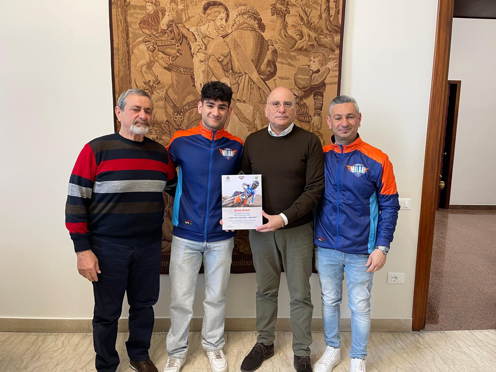 In occasione della giornata internazionale dello sport, l’Amministrazione comunale di Milazzo ha voluto rendere omaggio a chi con dedizione e sacrificio ha raggiunto risultati prestigiosi. A palazzo dell’Aquila l’assessore allo sport, Antonio Nicosia ha premiato il neo campione italiano “Supermarecross 2025”, Eros Aricò. Il ventenne milazzese ha vinto il titolo nella pista di Rosolina Mare a conclusione di una grande stagione, con una manche d’anticipo, grazie alle vittorie nelle precedenti gare. Aricò (KTM – Milani) ha dominato le due manche della Ama Mx2, dimostrando così di meritare ampiamente il titolo di campione tra la soddisfazione dei familiari ed in particolare del padre Stefano da sempre suo angelo custode durante gli allenamenti e le gare.