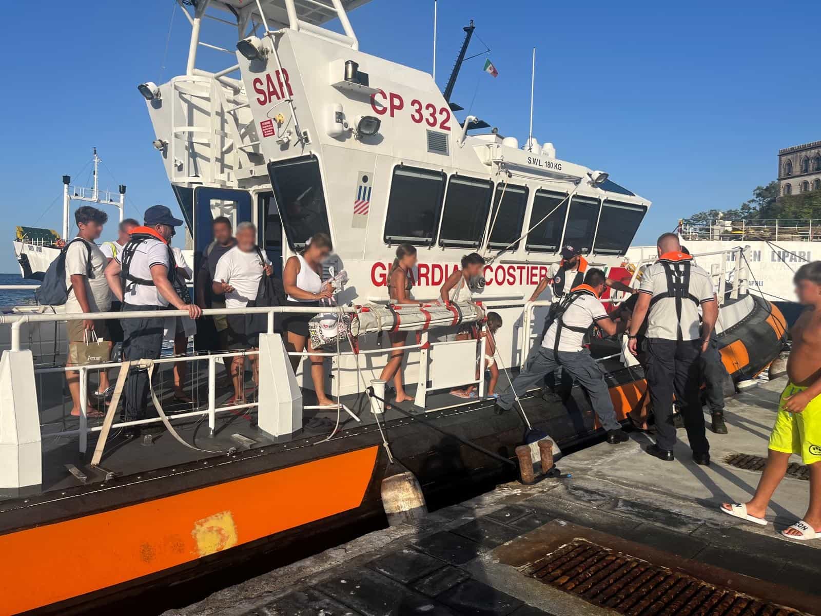 Prontamente è stato disposto l'invio della motovedetta SAR CP332 della Guardia Costiera di Lipari, la quale ha raggiunto rapidamente la zona intercettando l’unità in avaria e provvedendo a recuperare in sicurezza a bordo della motovedetta tutti i passeggeri. Una volta a bordo della motovedetta i 14 naufraghi sono stati trasportati al porto di Lipari dove sono giunti senza che si