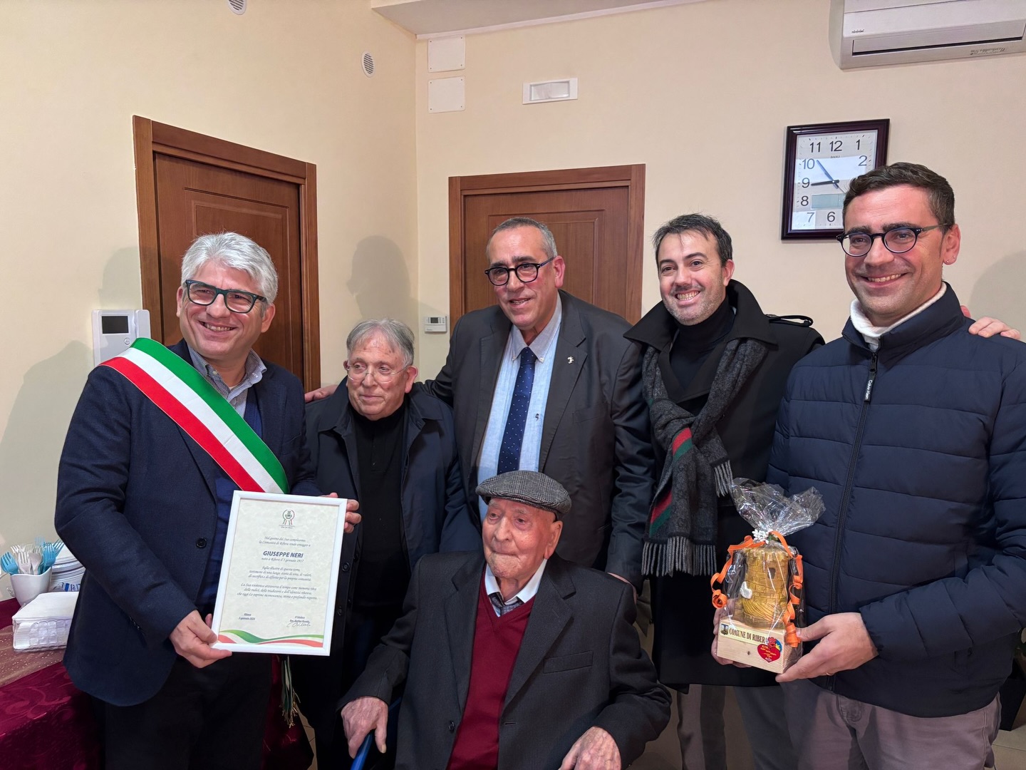 "Oggi ho l’onore di rendere omaggio a Giuseppe Neri, figlio illustre della nostra comunità. La sua lunga vita è testimonianza di valori, sacrifici e profondo amore per Ribera. In lui riconosciamo una memoria viva delle nostre radici e dell’identità riberese. Con sincera riconoscenza e rispetto, celebriamo un esempio che continua a parlare a tutta la comunità".