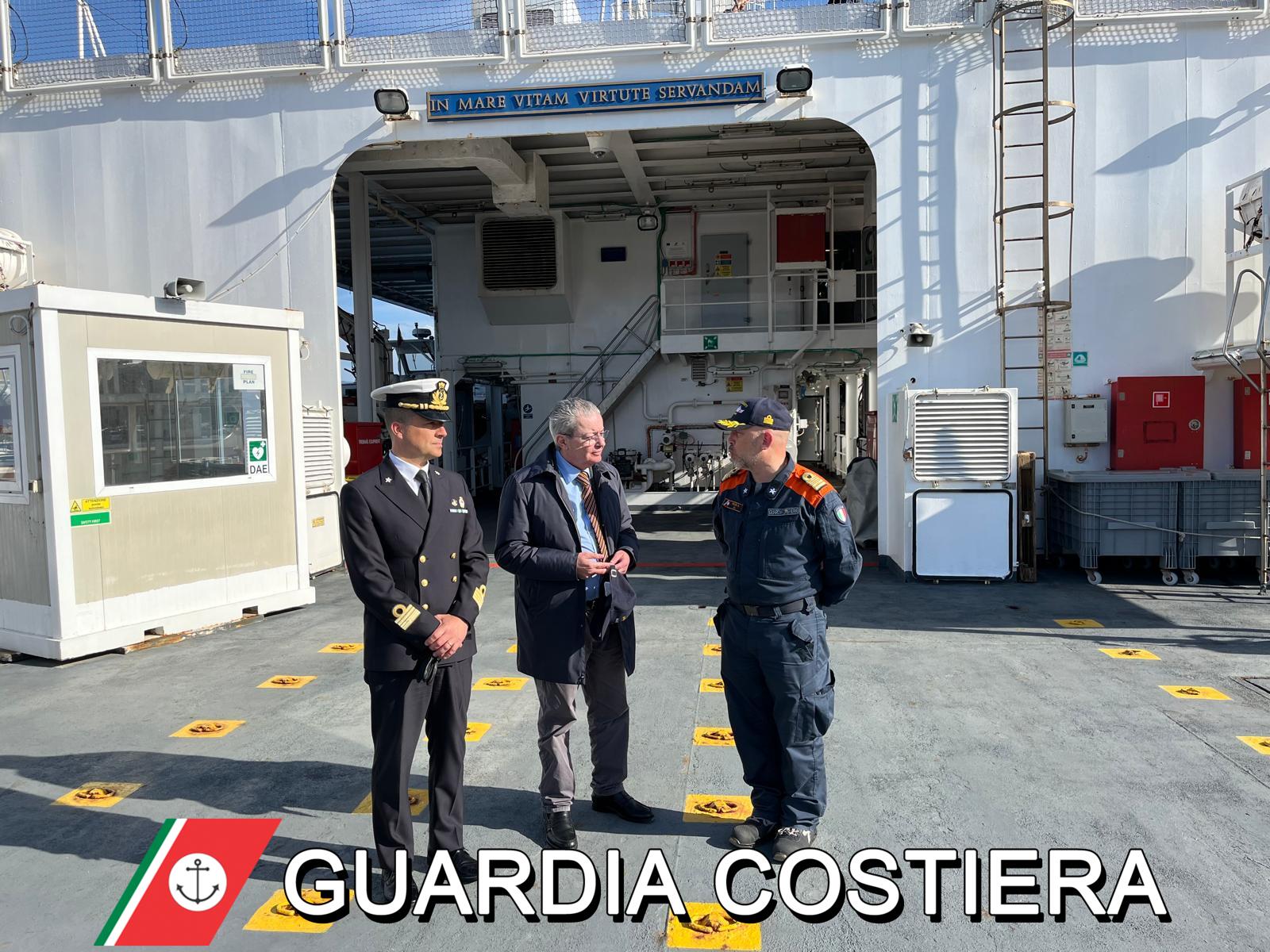 Nel corso della visita a bordo, il Procuratore ha avuto modo di constatare da vicino le caratteristiche operative della nave ammiraglia della Guardia Costiera, che svolge un ruolo strategico nelle attività di ricerca e soccorso in mare, nonché nelle operazioni di tutela della sicurezza marittima.