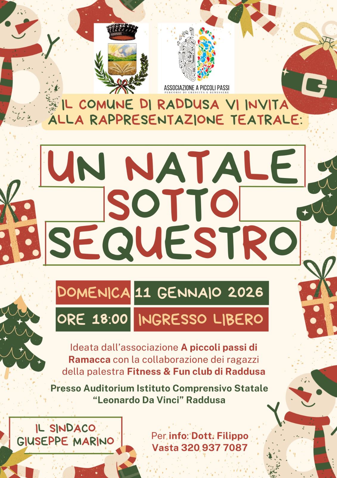 Raddusa (CT) Teatro e sociale a Raddusa: sul palco "Un Natale sotto sequestro" teatro raddusa evento Gen 09, 2026
